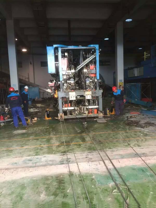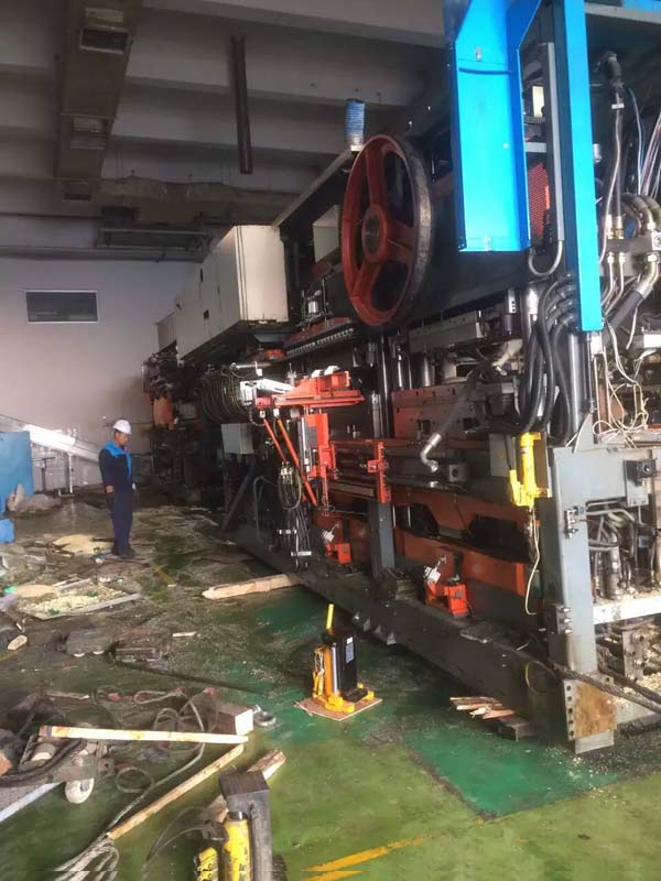 青島某工廠大型吹塑機(jī)設(shè)備搬遷吊裝現(xiàn)場