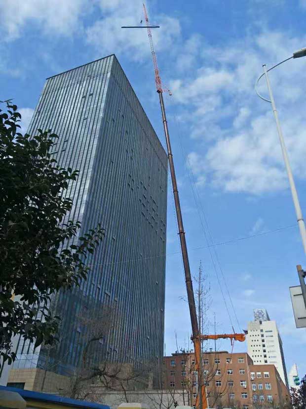 400噸吊車助力107米青島時(shí)代廣場(chǎng)高空設(shè)備吊裝